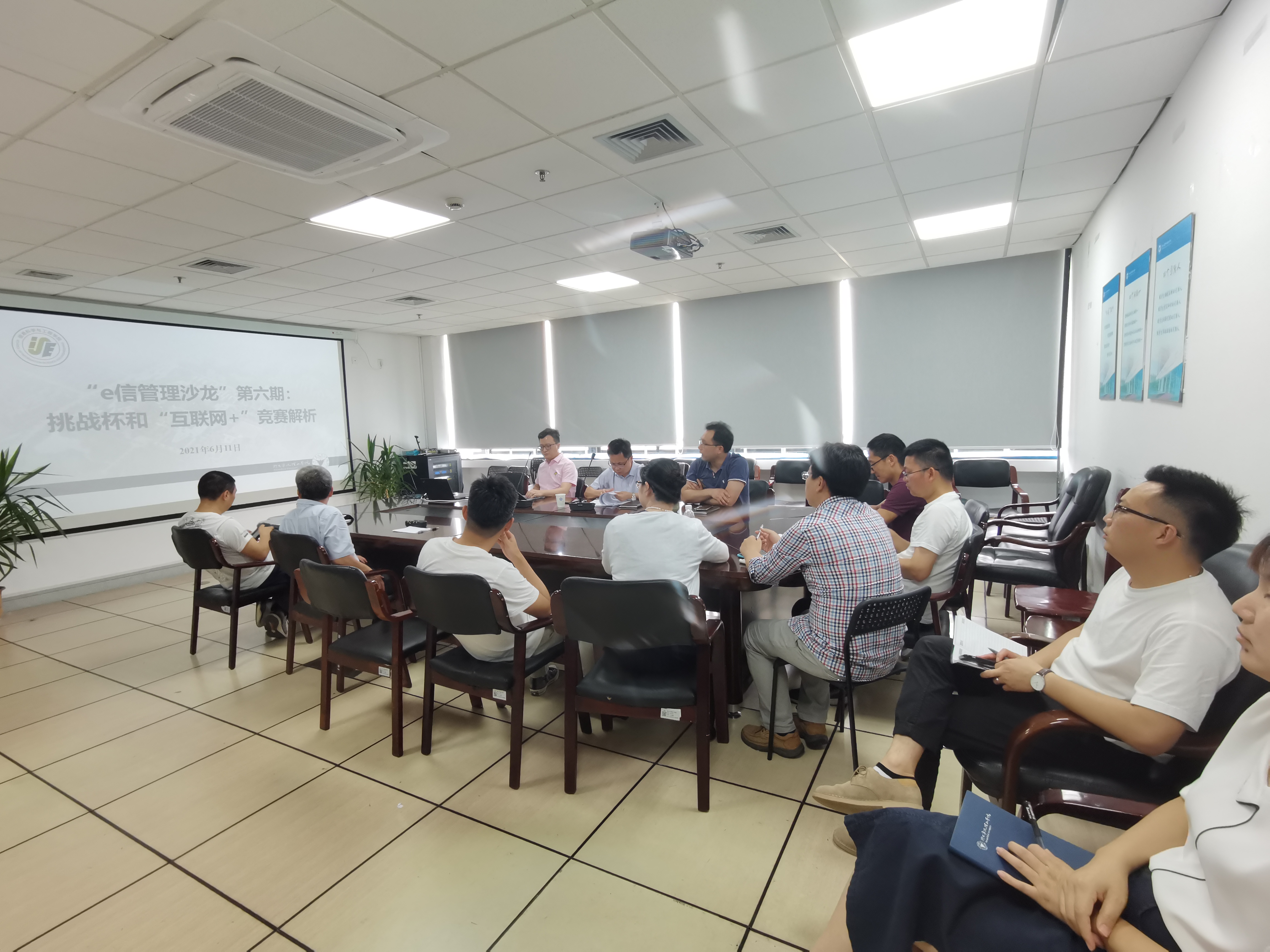为进一步强化公司科创育人体系建设,谋划公司学科竞赛平台发展。2021年6月11日,信息公司“e信管理沙龙”第六期—挑战杯和“互联网+”竞赛解析的交流研讨活动在石鳞大楼902会议室举行。本次沙龙由公司党委书记应中元主持,特邀启新公司副经理廖海鹏和公司团委副书记夏文来主讲,信息公司相关领导班子成员及二级机构相关负责人、学科竞赛骨干指导教师等参与了本次活动。