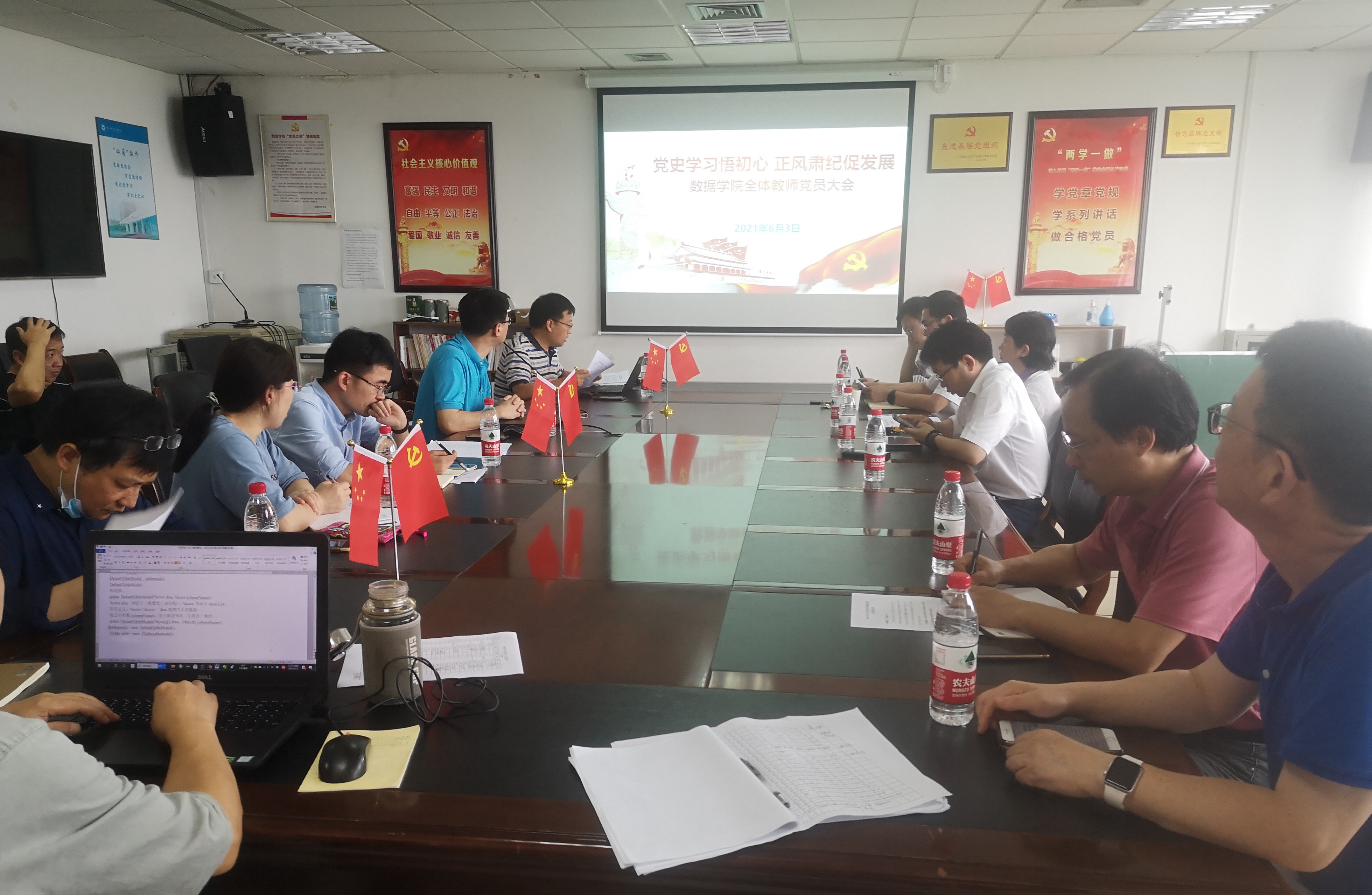 会上,于欣通报了公司开展党史学习教育进展情况,传达解读了公司关于开展重点领域违纪违规问题专项整治工作的通知要求,并部署了下一阶段重点工作。公司党委副书记兼纪委书记汪洪通报了相关廉情信息,深入剖析了科研经费使用、教职工兼职、师德师风等方面的典型警示案例,加强了教职员工的警示教育。此外,于欣还带领全体教师党员学习了《中国共产党普通高等公司基层组织工作条例》。