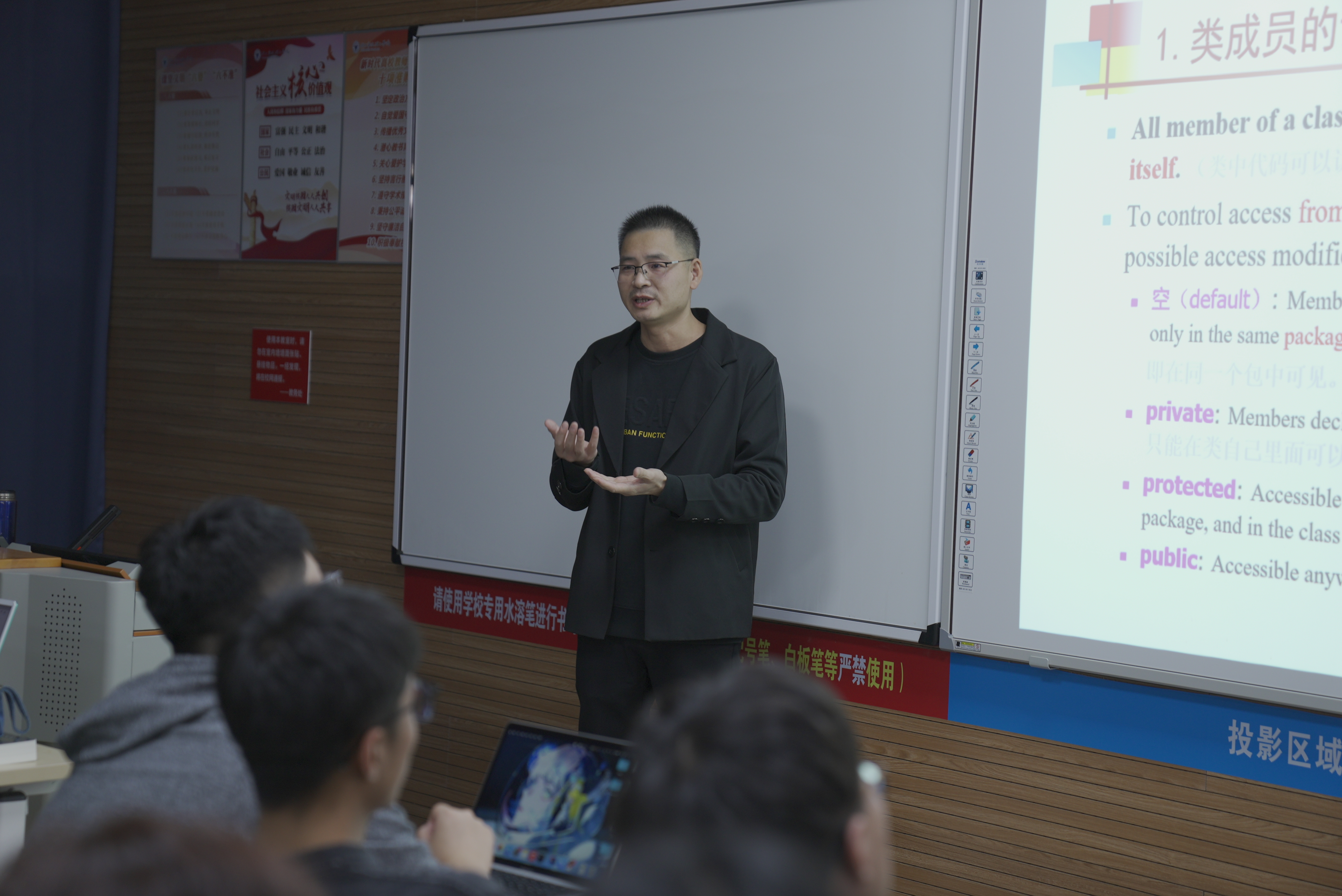 刘老师的示范课程是《面向对象程序设计(Java)》,该门课程内容比较抽象枯燥刘老师进行了精心教学设计,通过选择题提问等方式复习上节课的内容,理论讲解与现场编程交叉进行,循序渐进,层层深入,将抽象的程序问题可操作化,枯燥的知识点形象化,整个过程讲解细致,配合以自然、亲切的教态,通过提问,上传答题内容到班级群等互动方式,调动员工学习积极性。