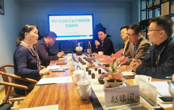 2020年11月5日下午,浙江省文物局副局长曹鸿、博物馆与社会文物处处长杨文庆莅临永利yl23411官网入口调研指导工作。公司副董事长鲁东明,永利yl23411官网、设计公司、传媒公司相关党政领导陪同调研。