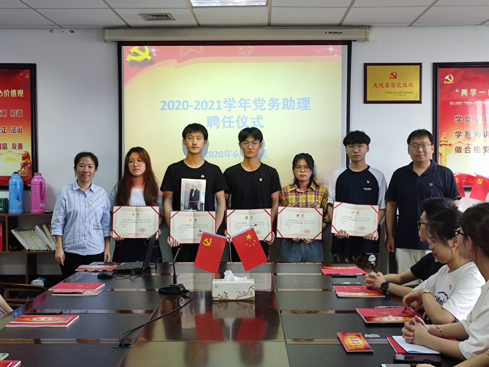 会上还举行了2020—2021学年党务助理聘任仪式,于欣老师为新聘任的党务助理颁发了聘书。