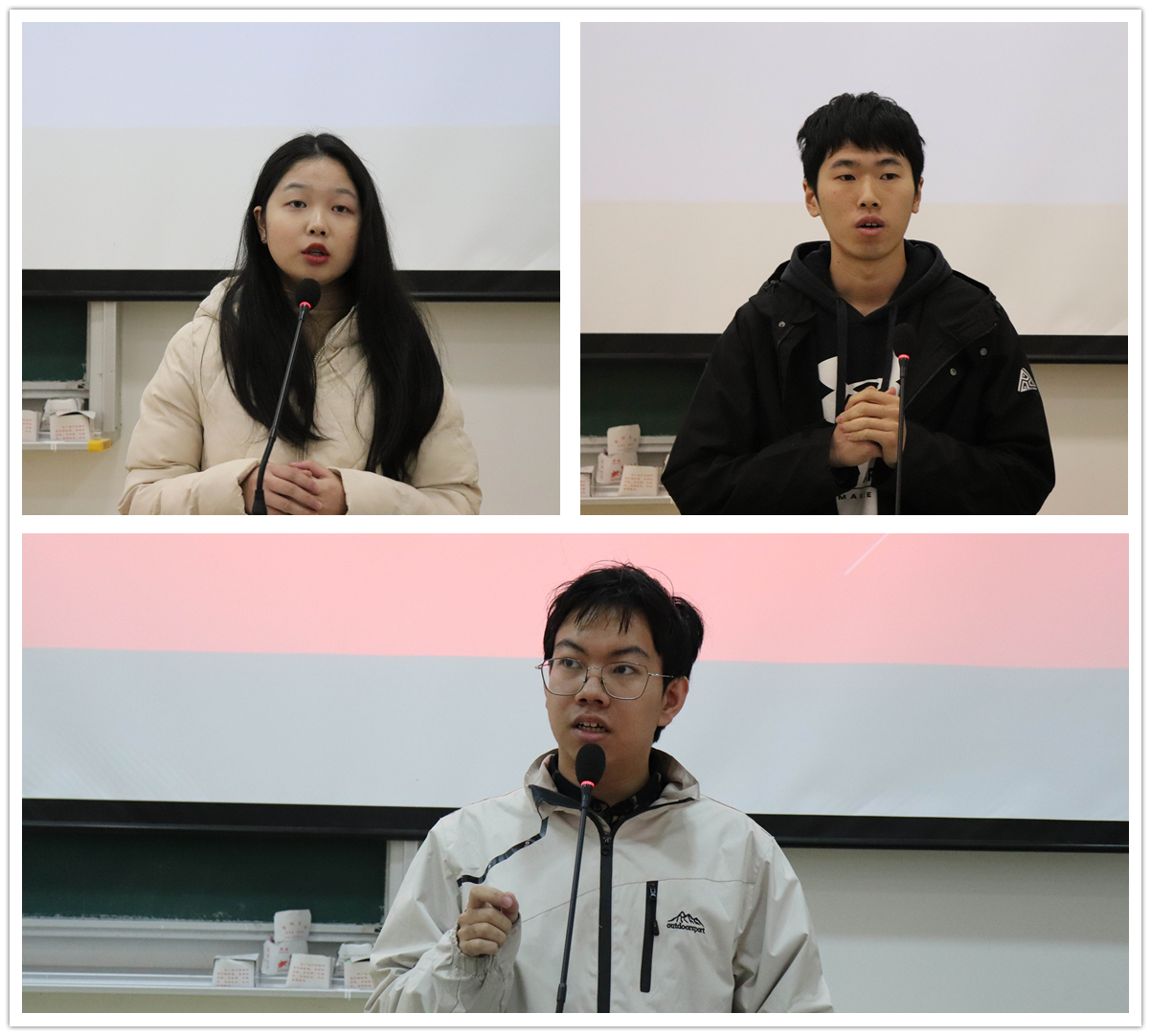 会议还安排了大数据181俞若晨、信计181施卓伸和计算机191张昊闻三名同学上台。他们分别就老员工科研创新项目、数学建模竞赛和程序设计大赛做了介绍,并分享了经验体会。
