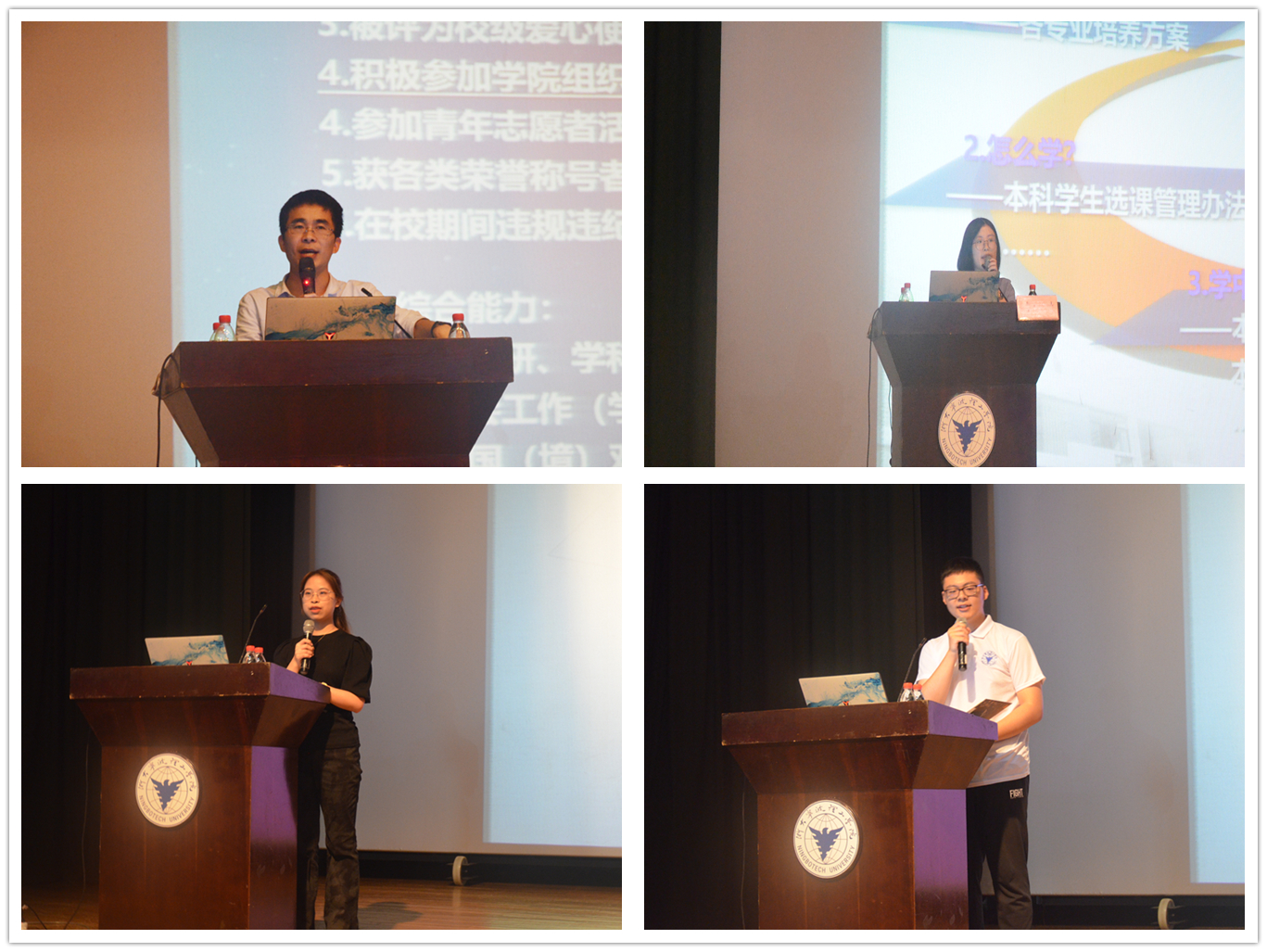 会议安排了规章制度相关培训,由教务办邓如婷老师和学工办马炜栋老师讲解。新生辅导员奚捷捷老师进行最后总结,并祝全体新生学有所成,度过一个充实而有趣的大学时光。