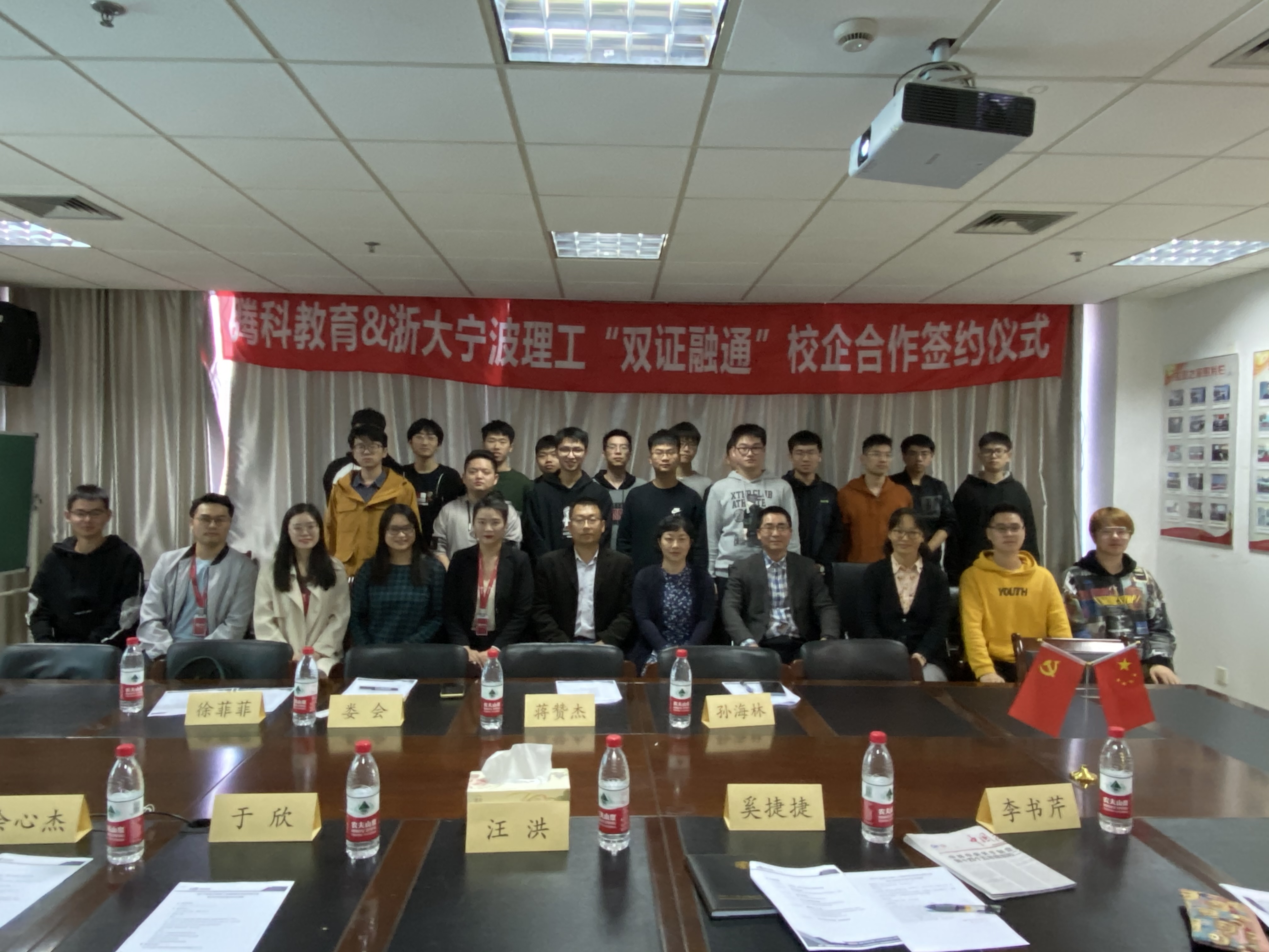 11月11日下午,永利yl23411官网与上海腾科教育科技有限公司共建“双证融通”人才培养基地授牌仪式在石麟602会议室举行。公司党委书记于欣、党委副书记汪洪,上海腾科教育科技有限公司总监娄会、校企合作经理徐菲菲出席揭牌仪式。永利yl23411官网学工办、教务办老师及师生代表40余人参加授牌仪式。仪式由永利yl23411官网副经理余心杰主持。