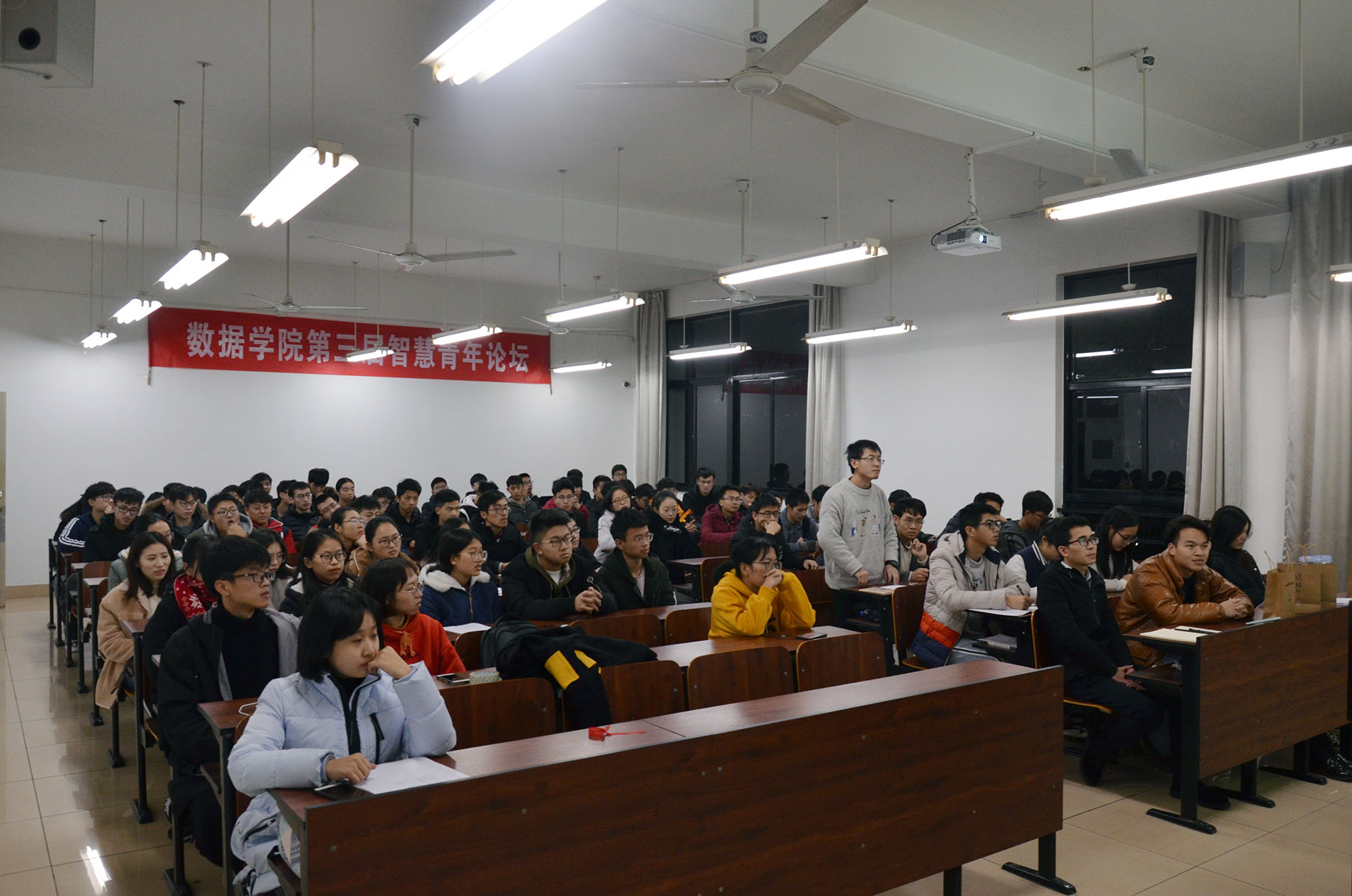 首先,由马炜栋老师做了简单的开题讲话,他希望同学们能够因这次讲座而受益。讲座的第一部分是“逐梦前行,精益求精”。郑成琦同学以竺可桢董事长的“两问”为开端开始了自己的演讲,向大家介绍了自己成功的不二法门——“投入时间”,并且告诉同学们要始终激励自己,“你应该要比现在强得多”。接着,“云上沐光”团队的代表向同学们介绍了他们公司的相关信息,发展情况和产品生产的环节。讲座的第二部分是“千帆竞发,百舸争流”。虞楚婷同学展示了自己获得的荣誉,提醒同学们在投入时间的同时要提高效率,应该更积极地加入到团队之中,在锻炼能力的同时多与他人交流。最后,周航超同学讲述了在ACM训练时的经历,并总结了他眼中的成功六要素:自学能力、独立思考的能力、良好的心态、结交优秀的朋友、做事持之以恒、坚定的信念。在场的同学们都认真聆听、积极提问。讲座在热烈的掌声中圆满结束。