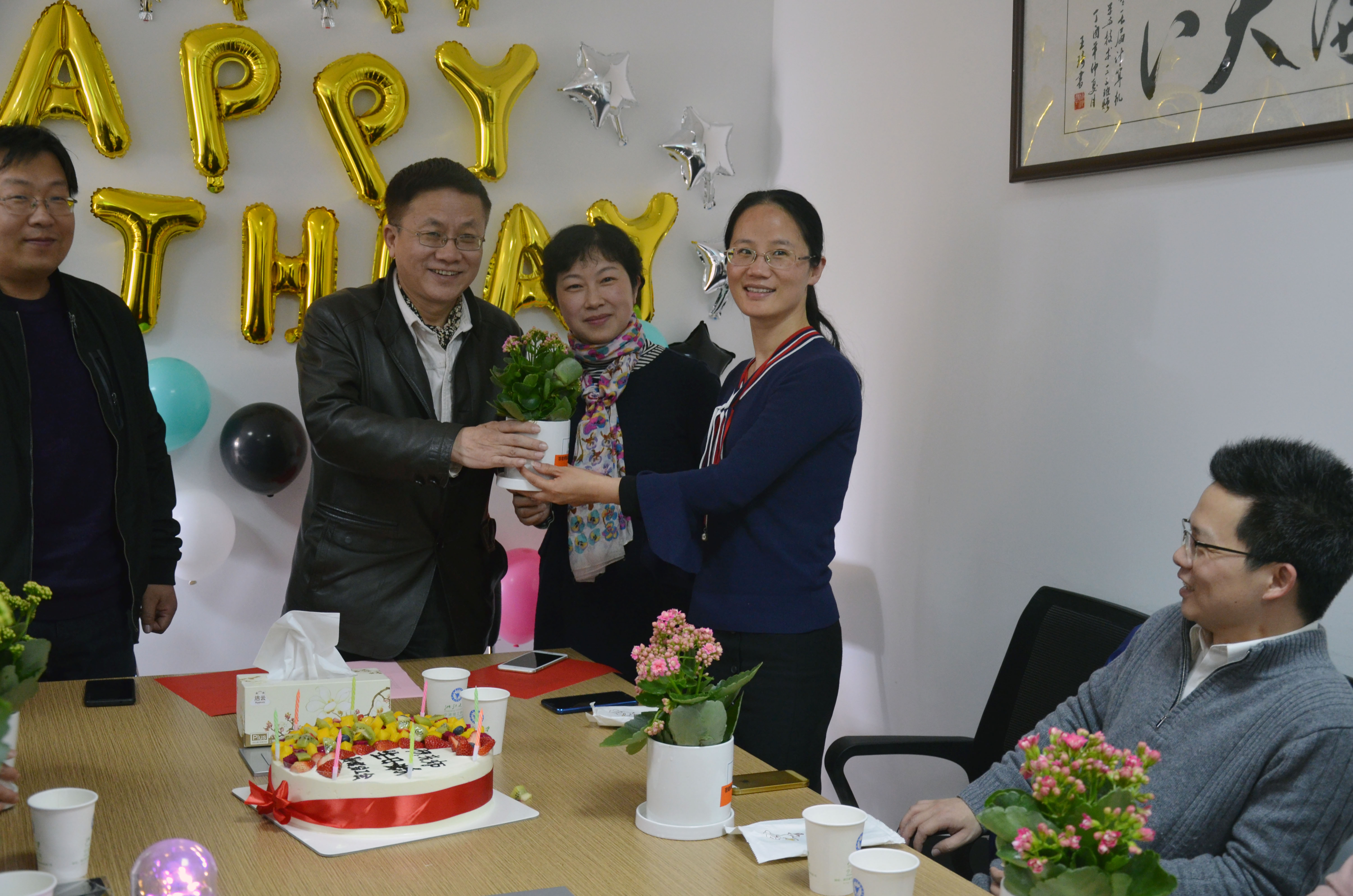 公司领导班子成员首先向寿星们表示真诚的祝福和良好的祝愿,祝老师们生日快乐、幸福安康。随后,由员工代表为寿星们送上班级同学精心准备的生日贺片,并当众朗读同学们的生日祝福,以不同的方式表达师生情,增进师生间的交流;伴随着生日快乐的歌声,公司经理庞超逸、公司工会主席蔡明伦为寿星们点蜡烛、切蛋糕,现场气氛轻松而温馨,大家一起品尝蛋糕,共同分享生日喜悦,感受着大家庭的温暖。最后,由公司领导班子和分工会代表给老师们献上分工会精心准备的绿植——长寿花,祝愿我们的老师青春永驻、健康长寿。