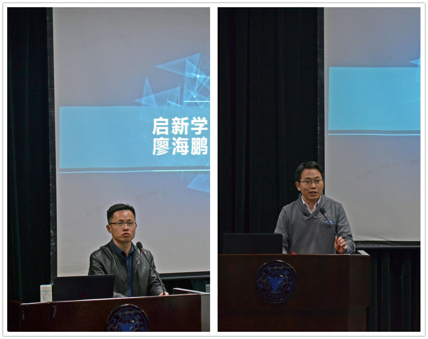 开幕式上,廖海鹏老师和陈根浪老师分别进行了讲话。廖海鹏老师深情回顾了自己曾在公司工作的经历,见证了公司ACM队取得的骄人成绩,并指出本次竞赛月活动的开展将会进一步推动公司创新创业和学科竞赛工作。同时,他对同学们提出三点建议:一是坚持正确的努力方向,二是坚定正确的价值导向,三是学思结合、善于创新。陈根浪老师对本次活动的原因和意义进行说明,强调数据学子必须要有扎实的编程基本功,激励数据学子敢闯敢拼、奋发有为,要注重创新创业能力的培养和实践能力的提升。会议还安排了信计162虞楚婷、信计161章宗沈和计算机172张逸凡三名同学上台。他们分别就老员工科研创新项目、数学建模竞赛、程序设计大赛等做了介绍,并分享了经验体会。
