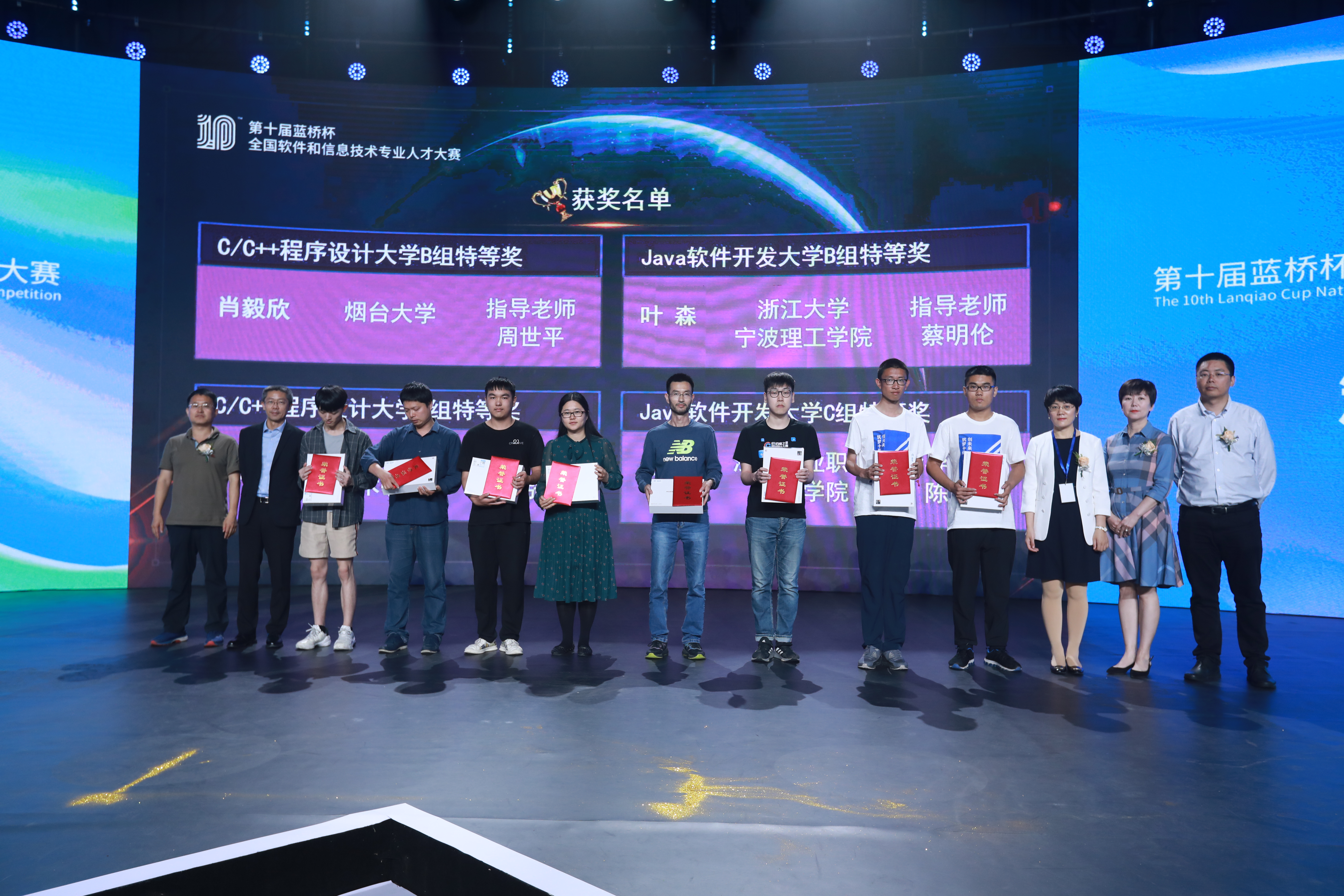 2019年5月25日,由工业和信息化部人才交流中心主办,教育部全国高等公司员工信息咨询与就业指导中心支持的第十届蓝桥杯全国软件和信息技术专业人才大赛个人赛全国总决赛在北京落下帷幕,浙江大学宁波理工公司学子在本次大赛中再创佳绩,获得1个特等奖,3个一等奖,2个二等奖,2个三等奖,1个优秀奖,其中由蔡明伦老师指导的叶森同学斩获了Java B组特等奖(全国第一名),登上了在北京大学邱德拔体育馆举行的颁奖典礼领奖台,浙江大学宁波理工公司时隔四年再获该项赛事全国特等奖。从第一次参赛,到今年的第十届蓝桥杯,在这十年间,浙江大学宁波理工公司共获得四次全国特等奖(2012年,2013年,2015年,2019年),成绩突出。
