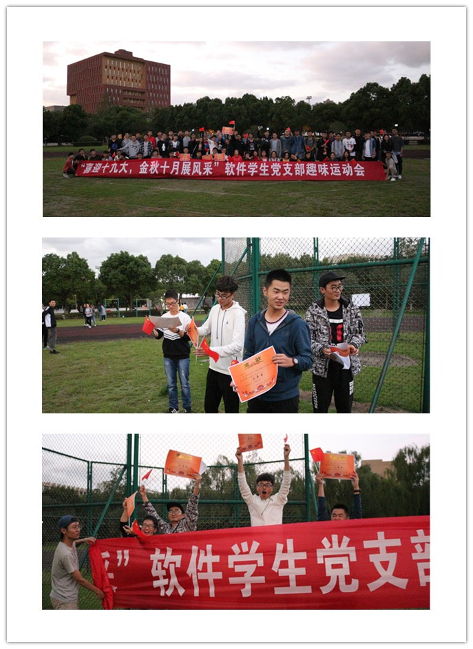 为了喜迎党的十九大胜利召开,促进新生互相交流,增进新生之间、班级之间的友谊,软件员工党支部在10月13日下午举办了“喜迎十九大,金秋十月展风采“软件员工党支部趣味运动会,支部全体成员和17级全体新生参加。趣味运动会的项目“运气球”、“你划我猜”、“石头剪刀布”、“疯狂躲避球”、“大胃王”、“拔河”,同学们都积极参加各个项目,现场到处是欢声笑语。大家都表示通过参加这样的活动,班级的凝聚力增强了,同学们之间的团队合作能力也提高了。最后,计算机类172班在各类活动中获得总分第一名的好成绩,计算机类171和软件专升本171班分别获得第二名和第三名的好成绩。