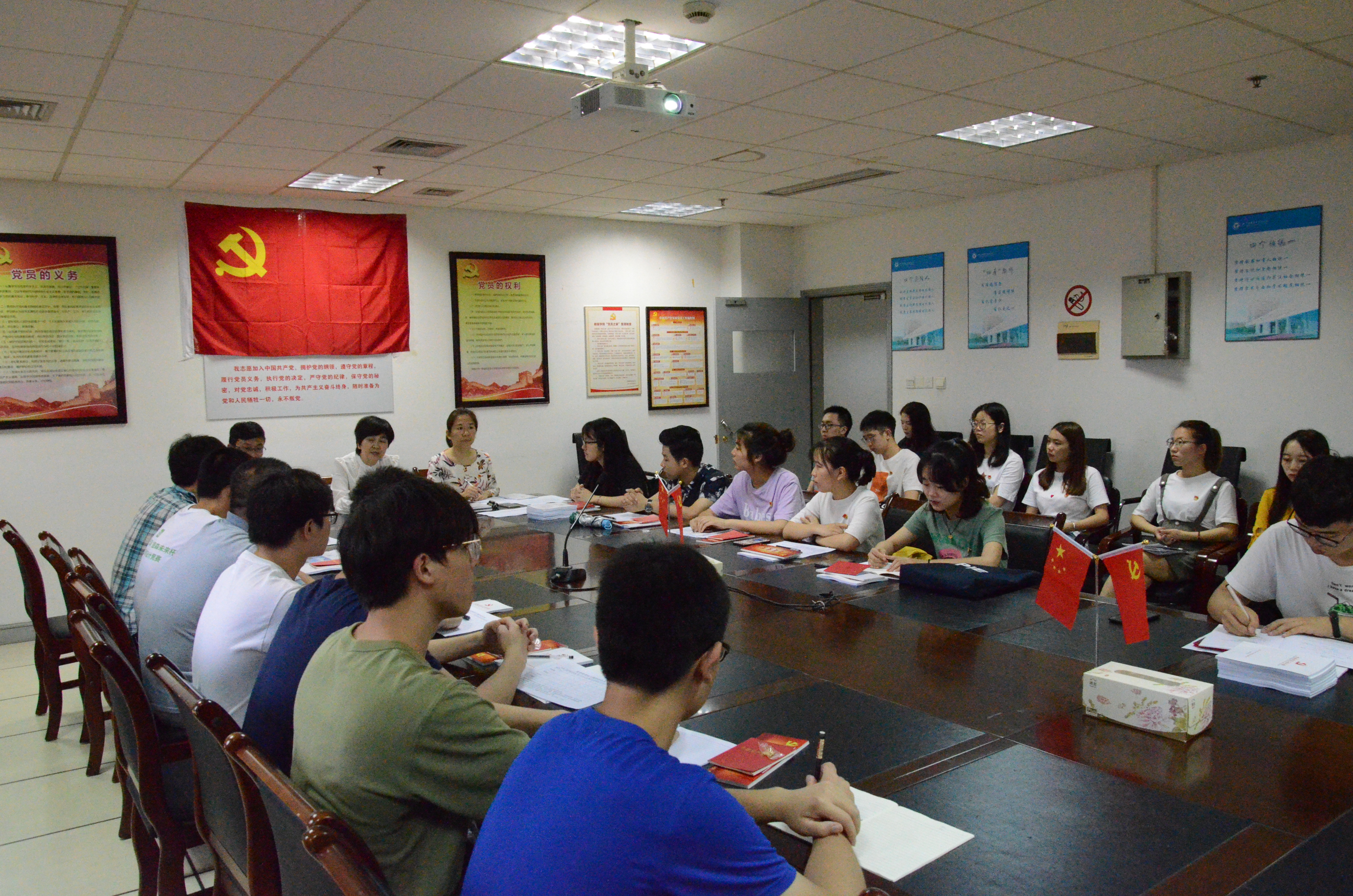 最后,党总支书记方国娟老师讲话。她在讲话中首先表示了对新发展党员的祝贺,同时对于全体员工党员提出了要求和希望,希望全体员工党员坚持学习党的知识以及专业知识;带头遵守规章制度;平时学习生活中要从细微处入手,敢于与不良现象作斗争等。