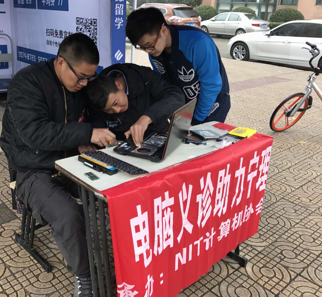 3月5日是学雷锋纪念日。为纪念雷锋同志、弘扬雷锋精神,永利yl23411官网志愿者们及计算机协会在两岸超市门口开展了科技校园行之电脑义诊活动。