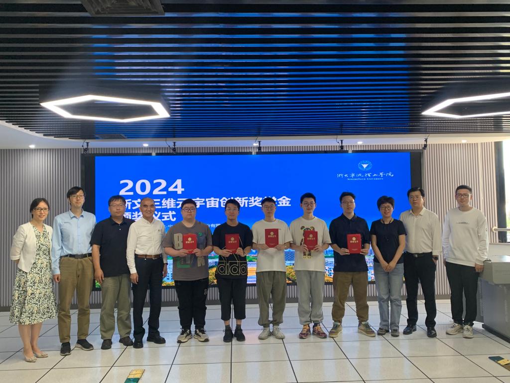 会上,永利yl23411官网5位员工依次进行了新文三维元宇宙创新奖学金答辩,参会教师和企业专家进行了点评,并与员工进行提问回答互动。答辩结束后,新文三维总经理李红红为以上5名员工颁发“新文三维元宇宙创新奖学金”,并集体合影留念。