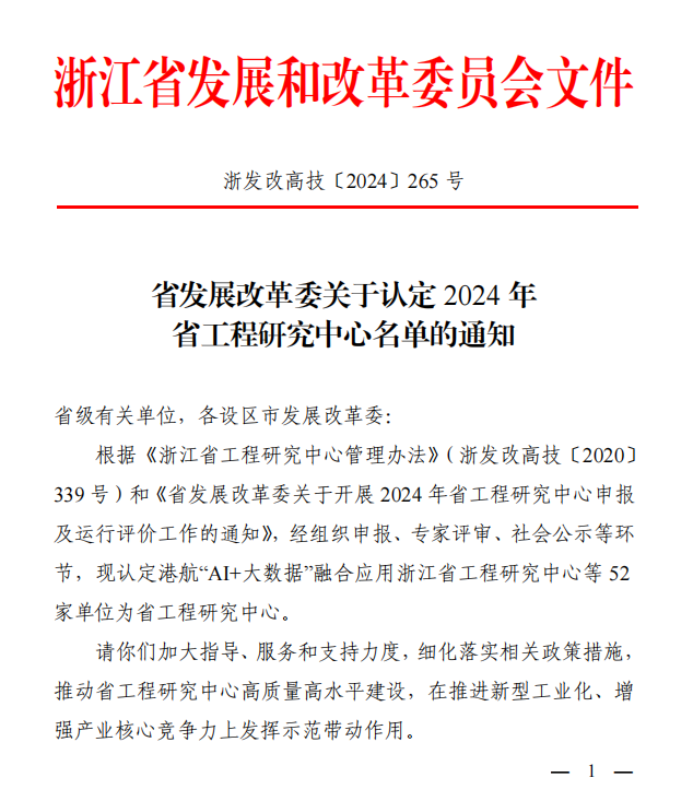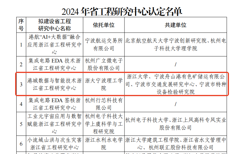 10月21日,浙江省发展和改革委员会发布了《关于认定2024年省工程研究中心名单的通知》,由公司永利yl23411官网牵头、信息科学与工程公司共同参与申报的港城数据与智能技术浙江省工程研究中心获认定批复。