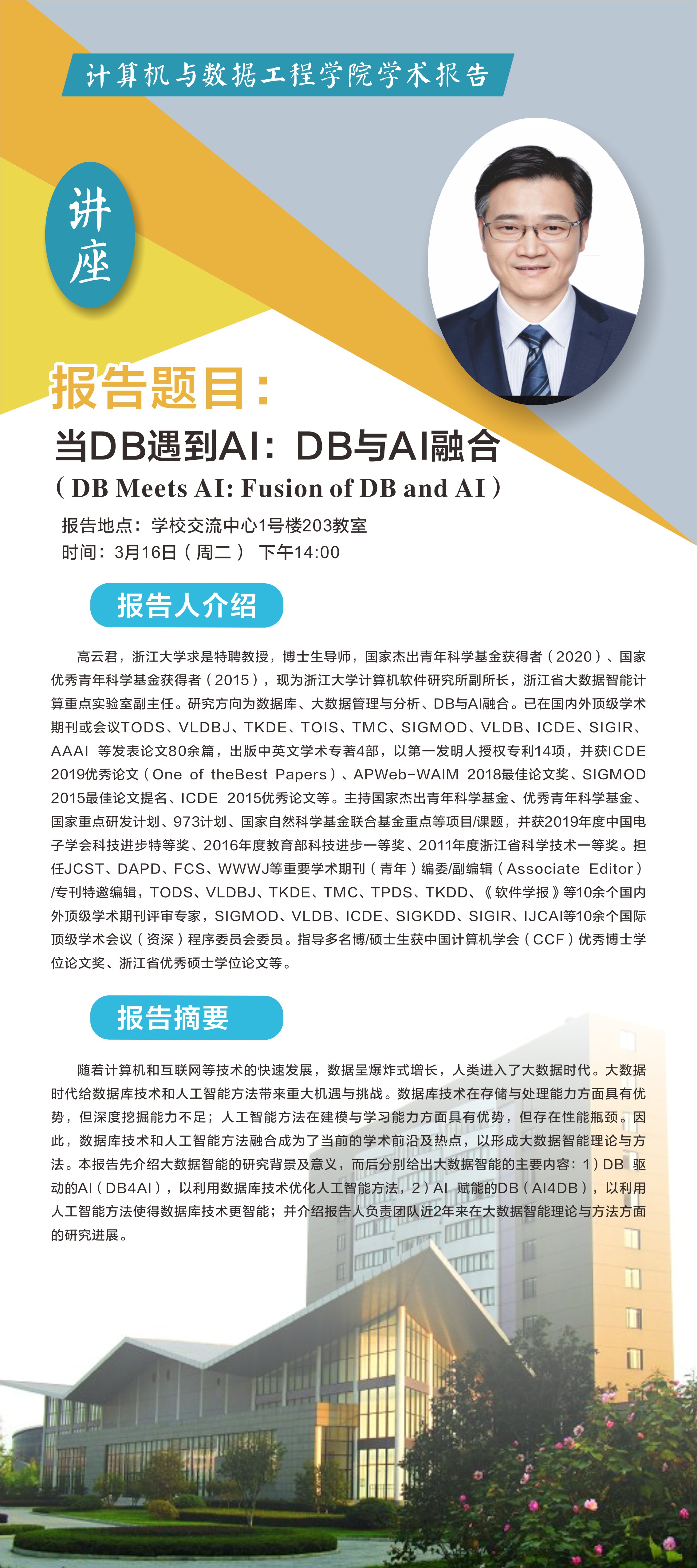 学术报告:当 DB 遇到 AI:DB 与 AI 融合(DB Meets AI: Fusion of DB and AI)